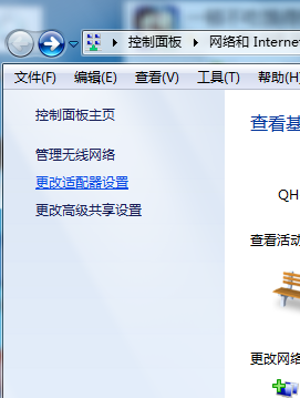 2. 网络和共享中心的左边列表中找到 “ 更改适配器设置 ” 点击