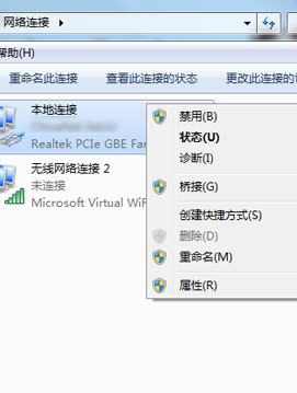 3. 网络连接列表中找到自己连接的网络「本地连接」点击右键, 右键列表中点击 “ 打开网络和共享中心 ”