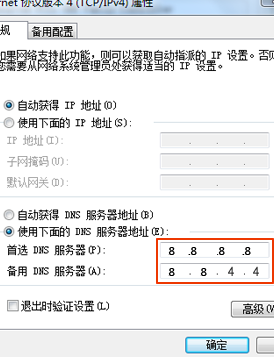 5. 在弹出的属性窗又中点击 “ 使用下面的 DNS 服务器地址 ”, 然后在服务器中输入更改的 DNS, 最后点击 “ 确定 ” 即可